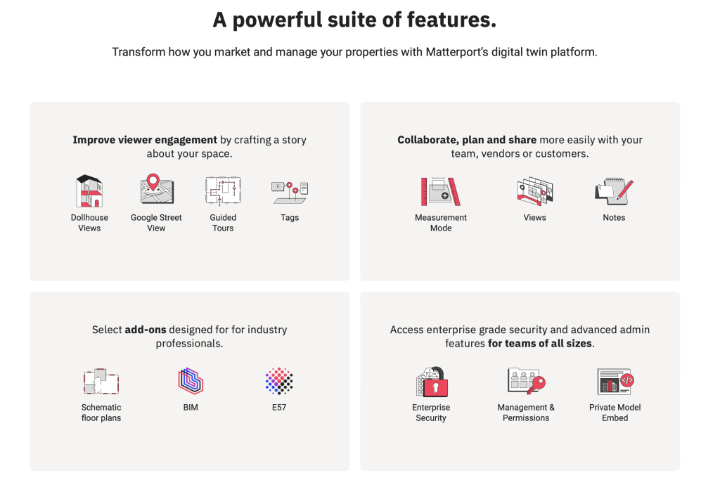 - Customer Engagement: Use Matterport 3D Virtual Tours on your website and social media to keep customers engaged, boost brand loyalty, and encourage them to share their experiences with friends and family.
